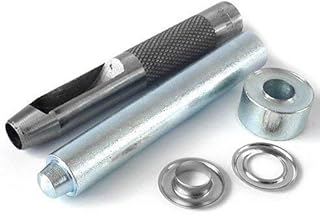 Trimming Shop 10mm Intérieur Trou Oeillet Outil Poinçon Kit avec Poinçon Creux et 100 Argent Œillets et Rondelles