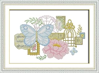 Awesocrafts Kit de broderie au point de croix Motif papillon et fleur Facile à broder pour Noël, estampillé ou compté (papillon, compté)