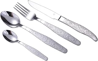 LAGUIOLE - Ménagère 24 pièces métal gravé - Style vénitien - acier inoxydable brillant et satiné - Style baroque chic - Couverts pour déjeuner ou diner - acier inoxydable - argent