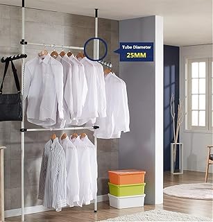 EBTOOLS Téléscopique Garde-Robe Système Portant de Vêtement Penderie Garde-Robe Télescope Système Support Télescopique Vêtements Largeur (80-139cm) Hauteur (281-329cm) Charge maximale 60 kg