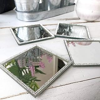 HomeZone® Lot de 4 dessous de verre carrés en verre miroir avec strass pour boissons, sets de table argentés et miroirs