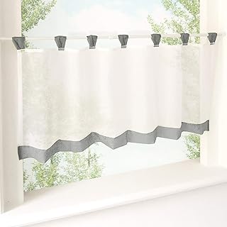 1Pc Rideau Brise-bise Transparent Bordure Inférieure et Pattes Colorés Rideaux Courts à Pattes Décoration de Fenêtre (HxL 60x90cm, Gris/blanc)