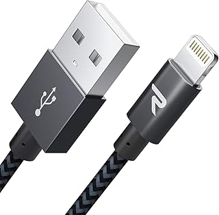 RAMPOW Câble pour iPhone [Certifié Apple MFi] en Fibre de Nylon Tressé avec Connecteur Ultra Résistant pour iPhone 11/11 Pro/X/XS/XR/8/8 Plus/7/7 Plus/6s/6s Plus/6/6 Plus, etc - 1m/3.3ft - Gris Foncé