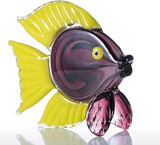 Tooarts Sculpture en Verre Jaune Tropical Fish Home Decor Animal Ornement Cadeau Artisanat Décoration
