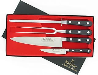 K SABATIER - Coffret De 2 Couteaux - Une Fourchette - Un Fusil 20 Cm Gamme Authentique - Acier Inoxydable - Manche Noir - 100% Forge - Entièrement Fabrique en France