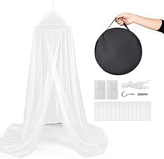DECARETA Moustiquaire Grand Lit Dôme 2.6mx11mx0.6m Moustiquaire Ciel de Lit Blanc Filet Anti Moustiquaire Lit 1 Place / 2 Places Moustiquaire à Suspendre Maille Fine pour Enfant Chambre Voyage