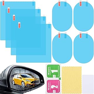 YUESEN Protection pour rétroviseur de Voiture 6 Pièces Film de Rétroviseur de Voiture Film Miroir Anti-Pluie Anti Buée pour Rétroviseurs de Voiture et Fenêtres Latérales