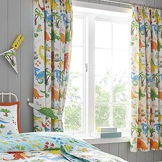 Happy Linen Company Rideaux à tête Fourreau plissée - Enfant - doublés - Motifs Dinosaures Mignons - 168 x 137 cm