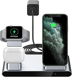 AICase Chargeur sans Fil, 4-en-1 Chargeur à Induction pour iWatch, AirPods Pro et Pencil,Station de Rechargement pour iWatch Series 5/4/3/2/1,Charge Rapide pour iPhone 11/11 Pro Max/XR/Samsung