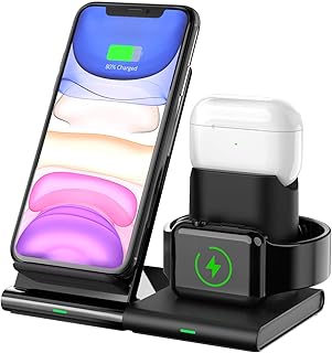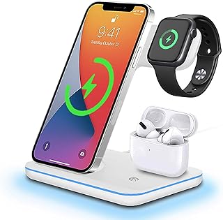 Wonsidary Station de Charge pour Apple, 3 en 1 Chargeur Rapide sans Fil pour iwatch 5/4/3/2/1 & Airpods Pro/2/1, Chargeur à Induction pour iPhone 11/11 Pro/11 Pro Max/XR/XS/XS Max/X/8 Plus/8
