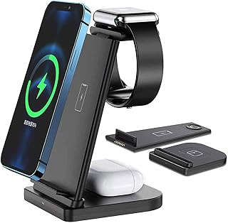 Chargeur sans fil 4 en 1 : le chargeur sans fil 4 en 1 compatible avec iPhone, iWatch, AirPods et crayon peut charger rapidement ces appareils sans fil en même temps. Livré avec un adaptateur d'alimentation de 18 W de haute qualité, la station de charge sans fil vous apporte une charge rapide et efficace. (Un adaptateur d'alimentation QC 3.0 Chargeur sans fil magnétique 4 en 1 : il vous permet de charger votre iPhone, Apple Watch, Apple Pencil et AirPods sans fil en même temps. Conçu pour iPhone 14/14 Plus/14 Pro/14 Pro Max/13/13 Pro/13 Pro Max/13 mini/12/12 Pro/12 Pro Max/12 mini, Apple Watch (6/5/4/3/2/SE), AirPods 3/AirPods 2/AirPods Pro, Galaxy Buds/Liberty Air, Apple Pencil