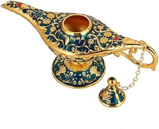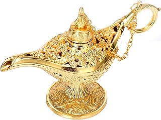 Siumir Lampe d'Aladdin Metal Lampe de Génie Doré Souhaitant Lampe pour Décoration, Cosplay