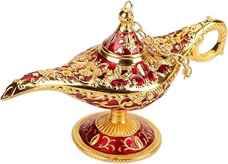 Aladdin Light, Metal Genie Light Lamp Collectible Aladdin Vintage Magic Lamp 3D Relief for Decoration and Gift, 12 x 4,5 x 6,5 cm (Golden Red)
