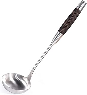 Newness Louche à Soupe, 35.9 cm Louche Cuillère à Soupe en 304 Acier Inoxydable, Louche Pochon avec Poignée en Bois, Cuillère de Cuisson pour la Cuisine