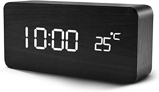 Réveil Numérique, Chalpr Alarm Réveil en Bois avec Fonction Snooze, Réveil Électronique en Bois avec 3 Réglages d'Alarme et Contrôle Sonore, de la Température pour Bureau et de Chambre (Noir+Blanc)