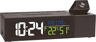 TFA Dostmann - Réveil Radio-piloté avec Affichage projeté - Donne la température ambiante - Plastique - Noir - 170 x 110 x 110 mm