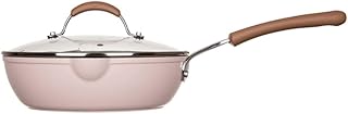 curtain Antiadhésif Wok à Fond Plat, Aluminium Acier Induction Poêle avec Couvercle en Verre et poignée Ergonomique for Skillet Accueil Cuisine, 9,4 Pouces, Rose
